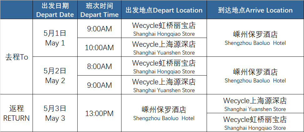 ①從機場坐網(wǎng)約車到【源深體育中心Wecycle門店】(靠近浦東國際機場)/【虹橋麗寶廣場Wecycle門店】(靠近虹橋國際機場),乘坐賽事接駁車,前往賽事官方酒店【嵊州保羅酒店】,全程用時約3小時。