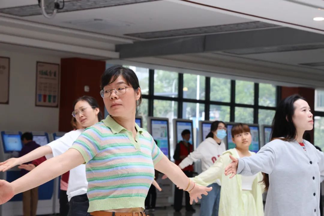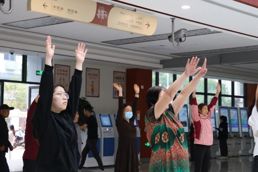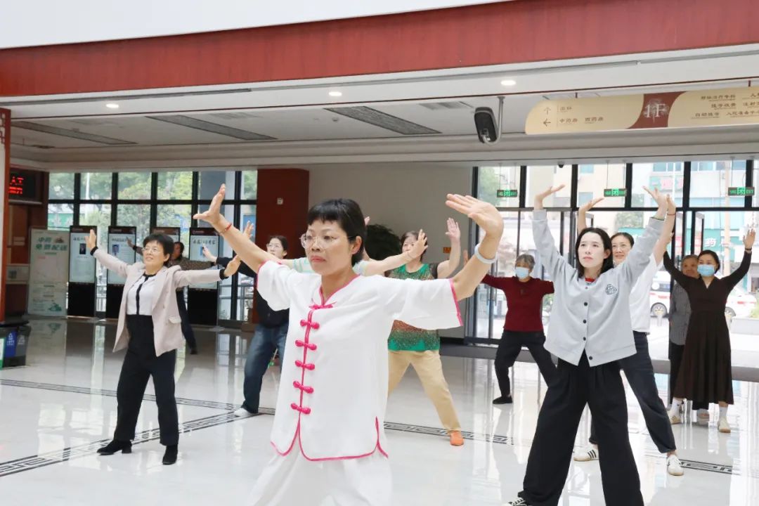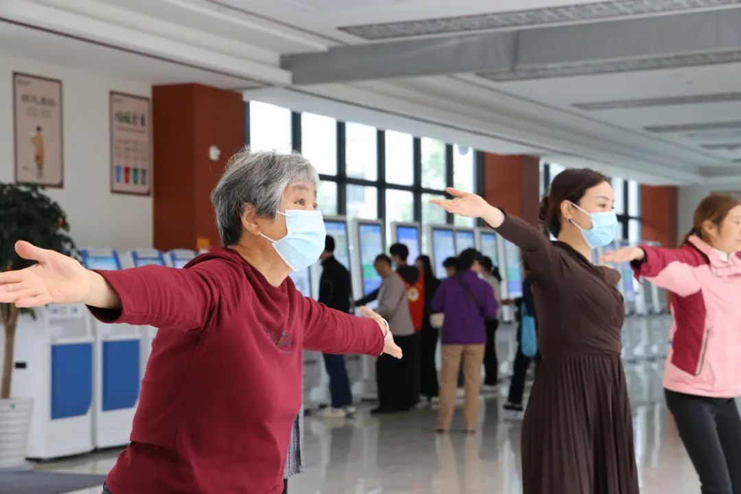 在八段錦演示現(xiàn)場,只見在場的每一位參與者神情泰然自若,呼吸吐納均勻,動作有柔有剛。八段錦的一招一式既有力量,又透著美感,也吸引了一些病友參與其中,形成了傳遞健康養(yǎng)生理念、共建和諧人文關(guān)系的一道靚麗風景線。