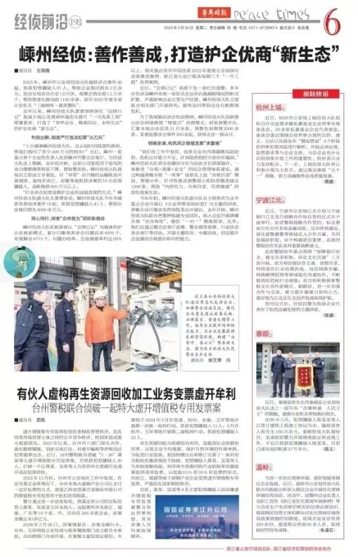 去年省委三個“一號工程”提出以后,嵊州經(jīng)偵大隊積極探索以“企情日記”為載體的護(hù)企優(yōu)商新模式,累計歸集各類涉企問題訴求4976個,有效解決4771個,問題辦結(jié)率、企業(yè)滿意率均達(dá)99%以上。相關(guān)做法獲評中國改革2023年度地方全面深化改革典型案例、浙江省公安廳服務(wù)保障三個“一號工程”優(yōu)秀案例。