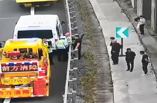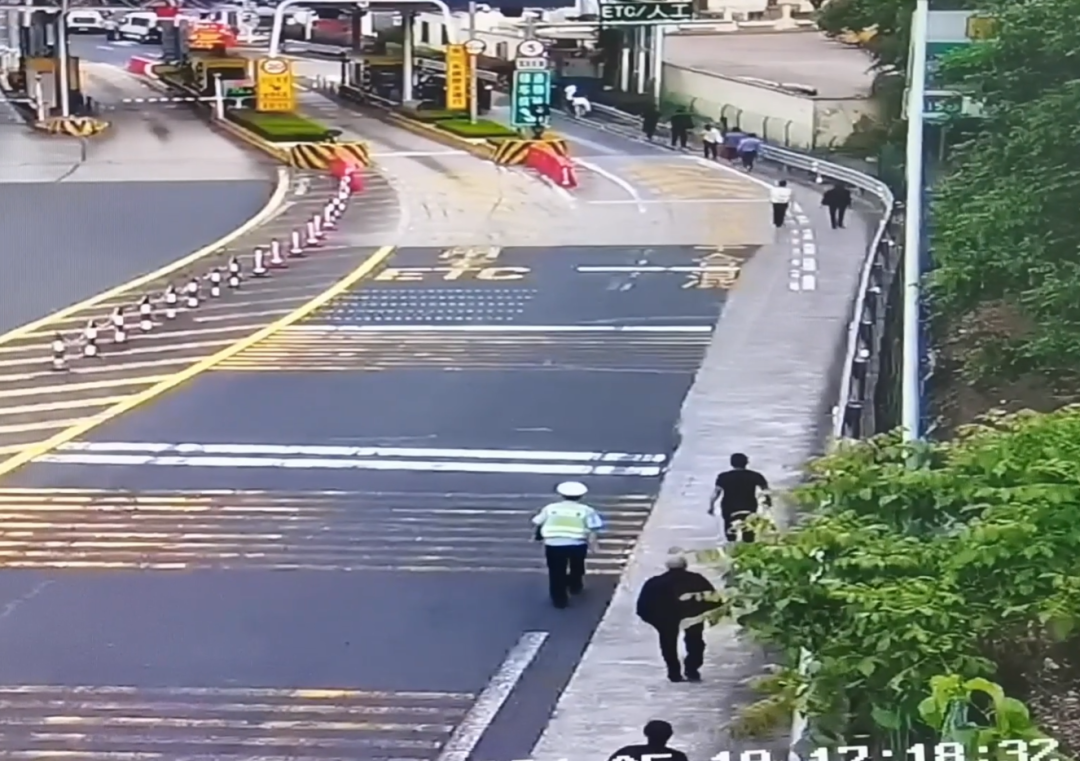 因此處是彎道,視線不佳,如果大量行人在高速上滯留極其危險。為了確保人員安全,救援人員立即把情況反饋給數(shù)字作戰(zhàn)室,值班民警通知雙彩收費站工作人員在出口協(xié)助,讓巡邏警力一起引導(dǎo)所有乘客沿著硬路肩離開高速,故障車輛慢慢駛離彎道開至前方港灣,后面用警車預(yù)警,由輔警一路步行將他們安全護送至收費站。