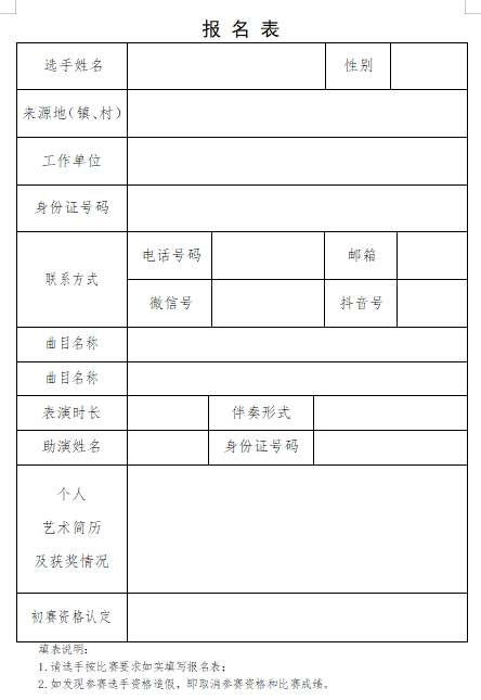 2.各行政村將報(bào)名表電子版報(bào)送至甘霖鎮(zhèn)綜合文化站。報(bào)名聯(lián)系人:盧振宇,聯(lián)系電話(huà)13735232577,微信號(hào):dd45086151。