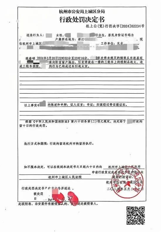 2024年3月20日,家住浙江杭州的仇某在房間內(nèi)吸煙。吸完煙后,多次隨手將煙蒂拋出窗戶外。