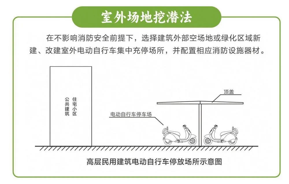 在大明·頤澤苑小區(qū)東北門口,新建了一處長約130米的集中充電場所,設(shè)置充電口130個(gè)、停放車位270個(gè),并配置推車式干粉滅火器、簡易噴淋等消防設(shè)施?!霸搱鏊拇蛟?,正是電動(dòng)自行車充停場所‘改造六法’的模范樣本之一。”柯橋區(qū)消防救援大隊(duì)相關(guān)人員介紹,通過采用室外場地挖潛法和公用區(qū)塊融合法相結(jié)合的形式,以20輛車為一組劃線分隔,按照該建筑原先配備的消防技術(shù)標(biāo)準(zhǔn)增設(shè)相應(yīng)的自動(dòng)噴水滅火系統(tǒng)、火災(zāi)自動(dòng)報(bào)警系統(tǒng)等,同時(shí)極大緩解了小區(qū)居民的充停難題。