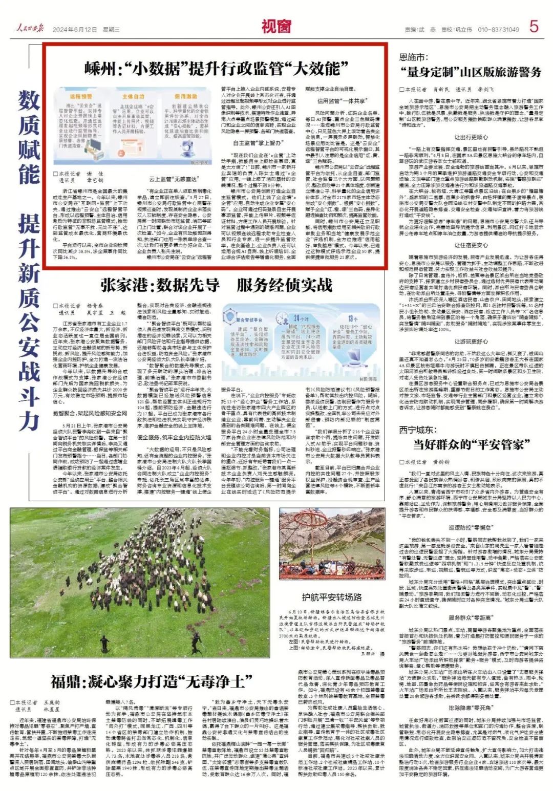 “有企業(yè)正在單人領(lǐng)取易制毒化學(xué)品,請立即前往核查。”5月27日,嵊州市公安局行政監(jiān)管中心民警在視頻巡查時,發(fā)現(xiàn)某制藥企業(yè)未落實雙人雙鎖制度,存在安全隱患。公安局第一時間聯(lián)動市場監(jiān)管、消防等部門上門處置,聯(lián)合對該企業(yè)開展了一次檢查。“如今,企業(yè)有風(fēng)險能即刻得知,執(zhí)法部門也用一張表單綜合查一次,讓我們有更多精力辦好企業(yè)?!痹撈髽I(yè)負責(zé)人張先生說。