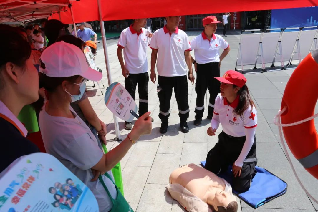 應(yīng)急救護(hù)現(xiàn)場,市紅十字救援隊為市民講解應(yīng)急救護(hù)知識,了解在突發(fā)事件中如何自救和互救,并與市民積極開展互動。