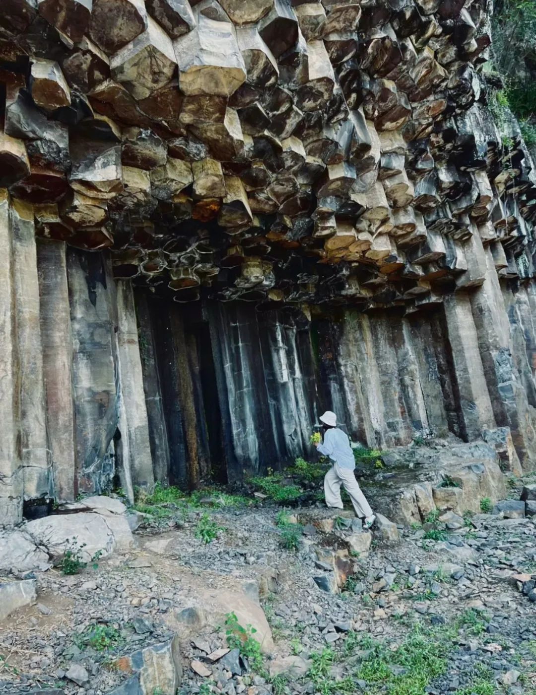 這是一片以千萬(wàn)根石柱堆砌起來(lái)的山崖石壁,是我國(guó)12處柱狀節(jié)理地質(zhì)奇觀之一,形成于第三世紀(jì)末或第四世紀(jì)初的地質(zhì)遺跡——玄武巖,距今已有250萬(wàn)多年的歷史。