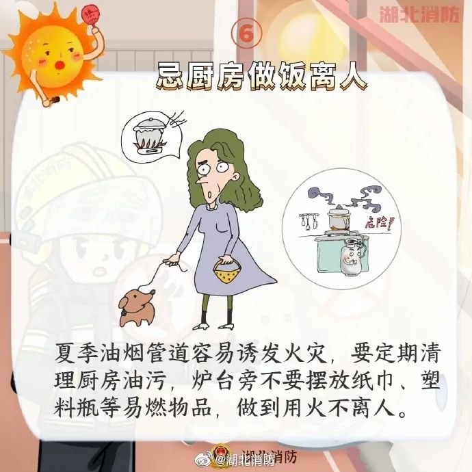 夏季廚房溫度較高,不少居民會(huì)在煮東西時(shí)去涼快的房間休息。如果長(zhǎng)時(shí)間離開,極易因沸湯溢出造成灶具熄滅,引發(fā)燃?xì)庑孤M(jìn)而引發(fā)火災(zāi)或爆炸。