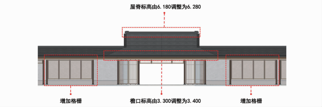 (1)S1門廳屋面及檐口高度調(diào)整,兩側(cè)增加格柵。
