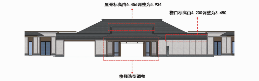 (2)S2門廳屋面及檐口高度調(diào)整,出入口處格柵造型調(diào)整。