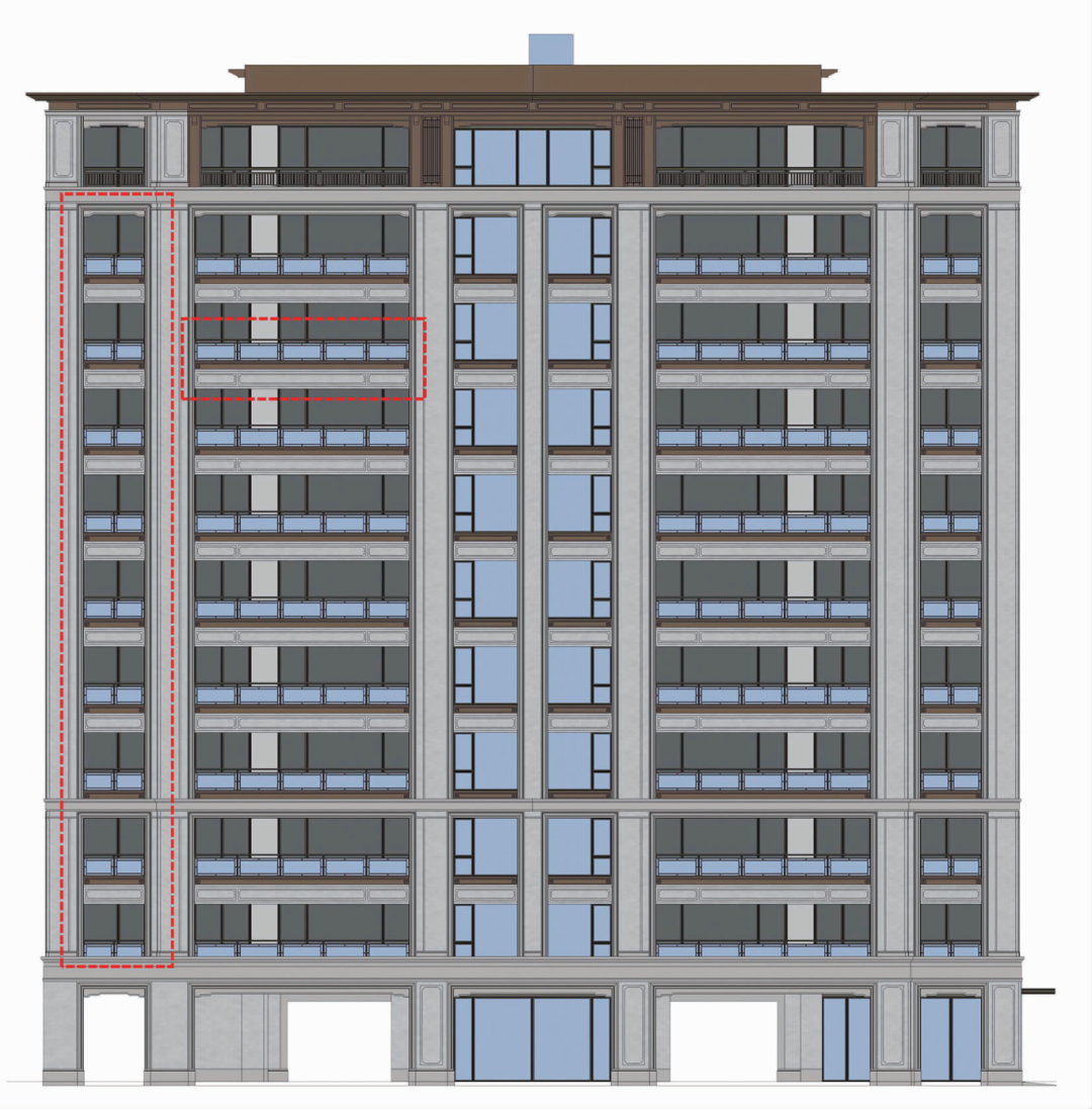 1.(因立面造型優(yōu)化)1—10#,20—22#樓,標(biāo)準(zhǔn)層(除頂層、底層)欄桿樣式修改。
