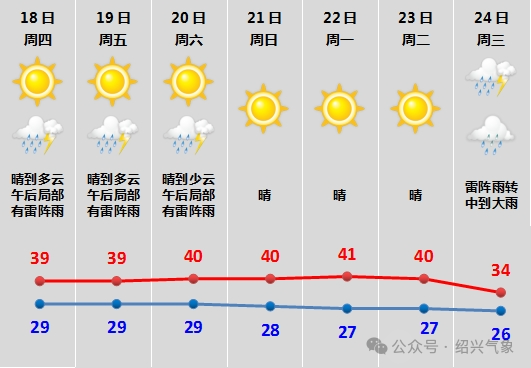 受副熱帶高壓控制,近期紹興持續(xù)晴熱高溫天氣,最高氣溫可達(dá)37~39℃,局部40℃以上,請(qǐng)注意做好防暑降溫工作。