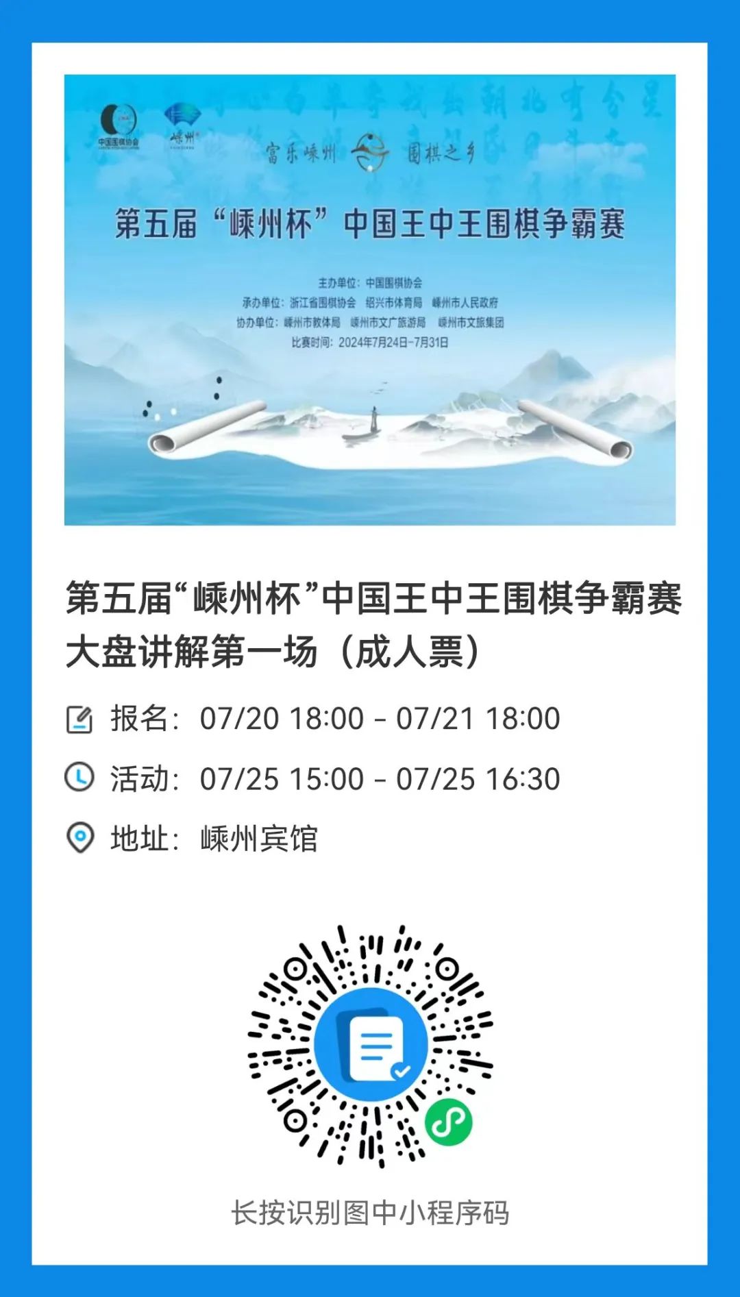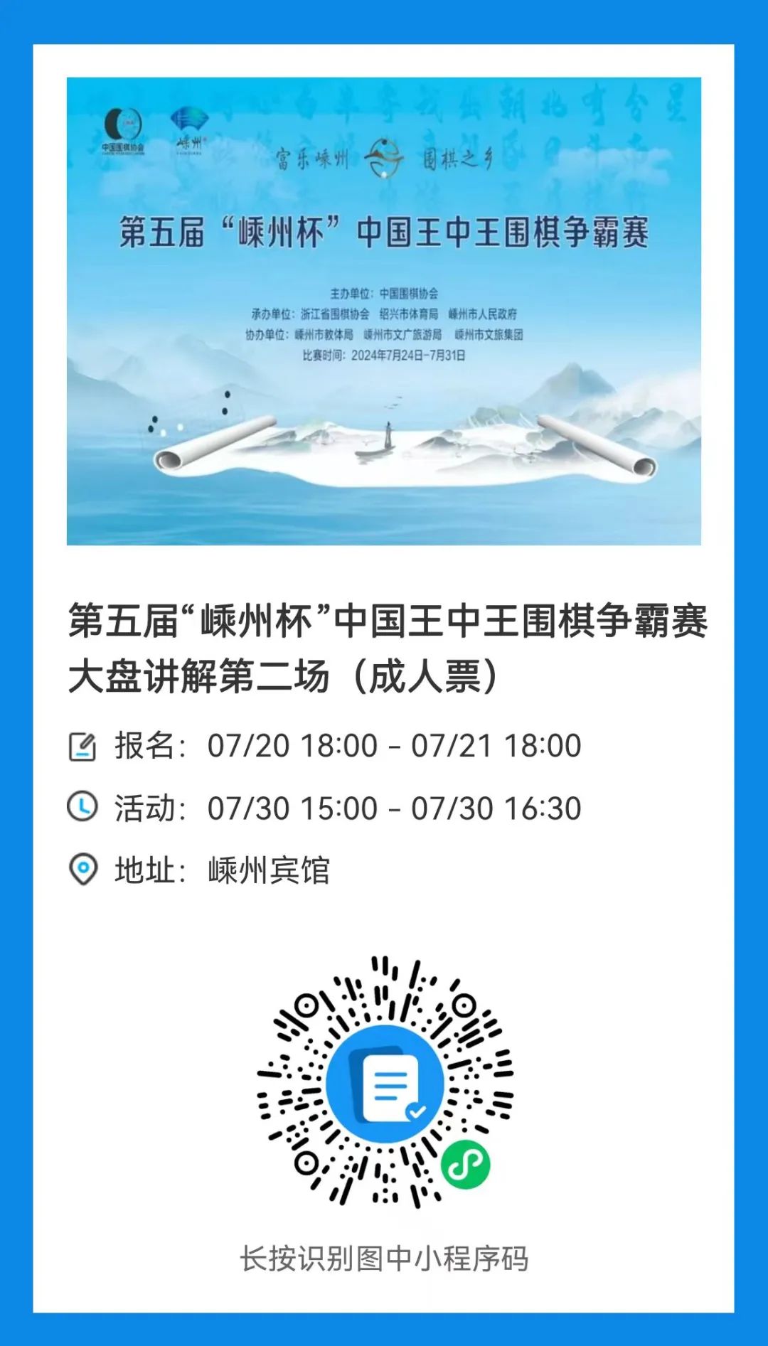 沒有搶到票的小伙伴們也不要遺憾,屆時兩場大盤講解會進(jìn)行全程直播,可在人民日報客戶端、人民日報視界、中國藍(lán)新聞客戶端、Z視介APP、錢江視頻、中國圍棋協(xié)會 bilibili官方號等平臺進(jìn)行同步觀看。直播觀看入口后續(xù)將在賽事公眾號發(fā)布,敬請關(guān)注!