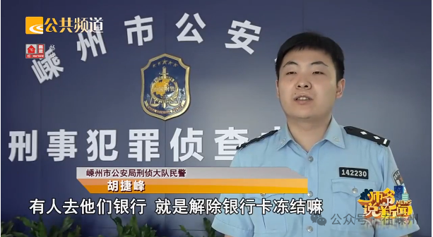 嵊州市公安局刑偵大隊(duì)民警 胡捷峰:有人去他們銀行就是解除銀行卡凍結(jié)嘛,然后在解除銀行卡凍結(jié)的過程當(dāng)中,發(fā)現(xiàn)他提供的由我局開具的那個(gè)解除封控的證明書是偽造的。