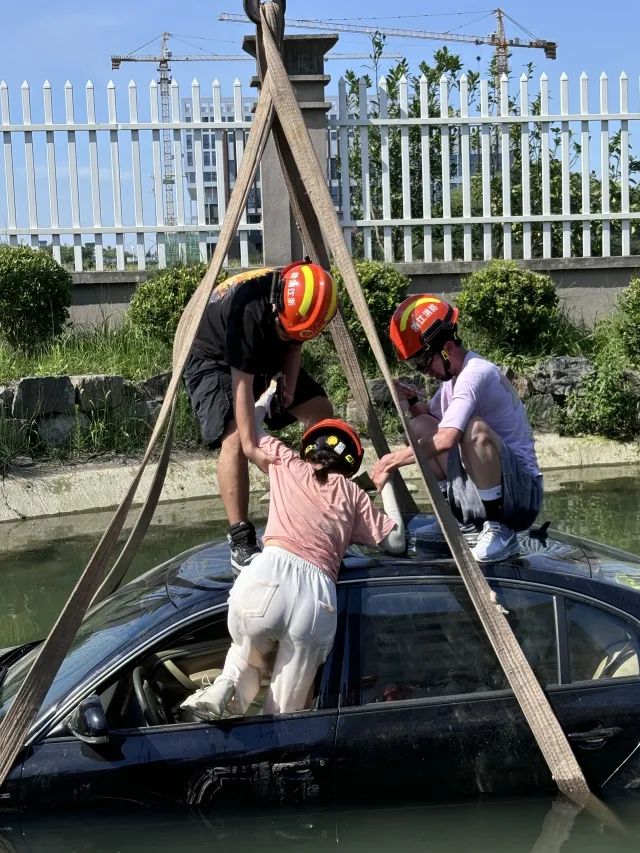 夏季除了高溫,短時強降雨引發(fā)的道路積水也不得不防范。此時車主被困,車外水位不斷上漲,該如何逃生?當(dāng)天的實驗最后,消防員坐進(jìn)車輛,緩緩被水淹沒......起初,車輛被吊機放入池塘,水位剛剛沒過車輛底盤。一旁的消防員說發(fā)現(xiàn)自己被困時,最先要做的就是冷靜,此時正是逃生自救的黃金時期。被困人員要立馬解開安全帶,打開電子中控鎖,迅速從車門、車窗、天窗逃生。當(dāng)車外的水位到達(dá)門把手時,車門可能無法打開,電子元件進(jìn)水可能導(dǎo)致車窗無法打開,這時就要用安全錘砸窗逃生。如果沒有安全錘,可以拆下座椅的頭枕,用頭枕支桿等尖銳的硬物砸窗。砸窗也有技巧。前后擋風(fēng)玻璃最為堅硬厚實,人在車?yán)锩婧茈y砸破,所以要優(yōu)先選擇砸兩側(cè)的車窗,還要從車窗邊緣砸起,猛擊之后出現(xiàn)裂紋,玻璃就很容易砸碎了。消防員用頭枕做示范,猛烈錘擊二三十下,車窗裂開一道口子,一拳下去整塊玻璃掉落。此時,車內(nèi)的水已經(jīng)沒到膝蓋。抹干凈邊緣的碎渣后,被困人員依次爬上車頂,成功逃生。回到岸邊,消防員說還有種危險的情況——水位淹沒車窗。車?yán)锏娜丝梢缘却耆嗳胲囕v,等到車內(nèi)外水壓一致時,深吸一口氣,嘗試用力打開車門然后逃生。警方在此提醒,夏季強對流天氣頻發(fā),各位市民朋友出門前要關(guān)注天氣狀況,留意天氣預(yù)報。車輛被困水中時,應(yīng)保持冷靜,抓住逃生自救的“黃金時間”,當(dāng)水漫入車內(nèi)導(dǎo)致汽車電路失靈無法打開車門車窗時,要利用身邊一切可利用的尖銳物品砸開車窗。遇險無法自救逃生時,第一時間撥打119尋求救援。打火機、礦泉水瓶、香水、降溫噴霧