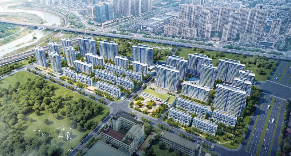 1號(hào)地塊用地面積為47463㎡(折合約71.19畝),地上建筑面積為74193㎡,地上容積率 1.56,地下容積率 0.62,綠地率 34.47%,建筑密度 24.41%。