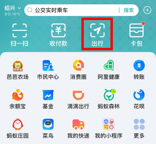 點(diǎn)擊支付寶首頁(yè)“出行”