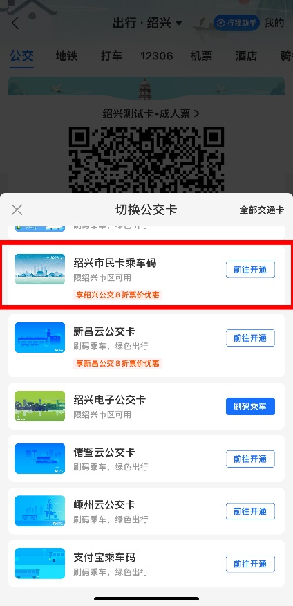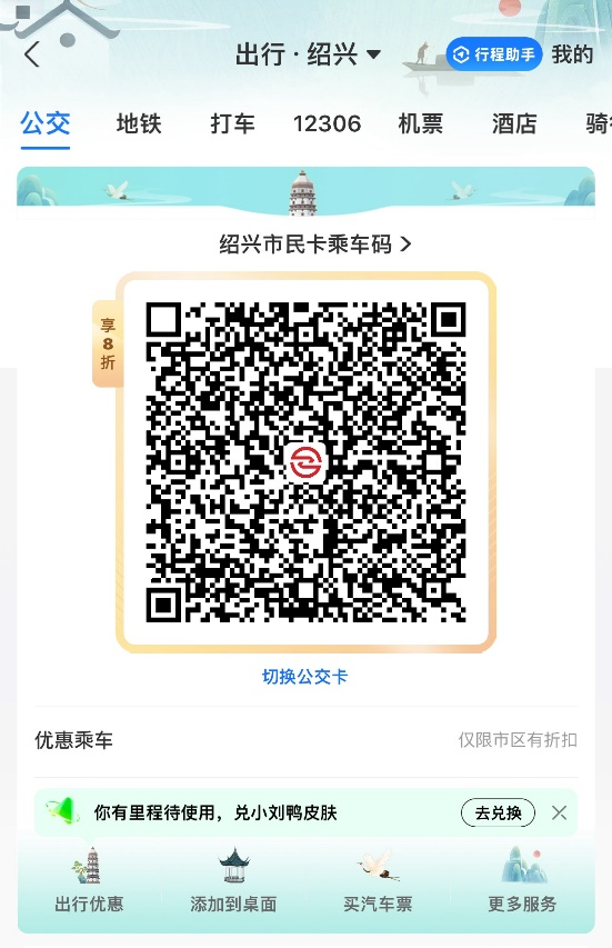 選擇【紹興市民卡乘車碼】掃碼乘車享優(yōu)惠