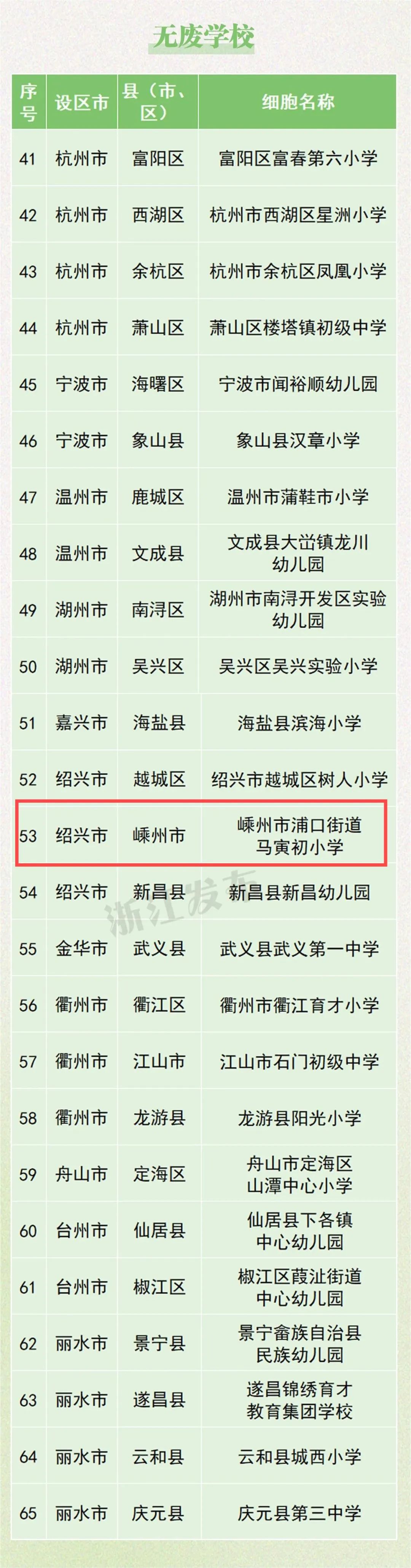近日,省美麗浙江建設(shè)領(lǐng)導(dǎo)小組辦公室公布2023年度百優(yōu)“無廢城市細(xì)胞”名單,包括無廢工廠、工業(yè)園區(qū)、鄉(xiāng)村、學(xué)校、醫(yī)院、景區(qū)、飯店、體育場(chǎng)館、機(jī)關(guān)、島嶼、油庫(kù)、社區(qū)、鄉(xiāng)鎮(zhèn)、實(shí)驗(yàn)室、加油站、碼頭、汽車4S店等17大類123個(gè)“無廢城市細(xì)胞”入選。
