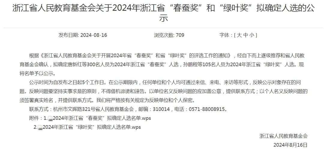 “春蠶獎(jiǎng)”和“綠葉獎(jiǎng)”擬確定人選