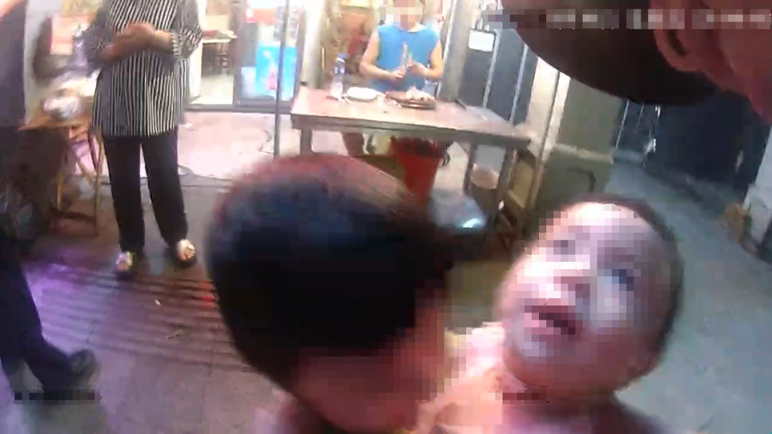 店主看到民警抱著自家孩子吃了一驚