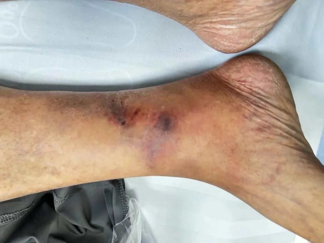 近日,三門縣人民醫(yī)院新院區(qū)急診搶救室接診了一位被梭子蟹鉗傷的市民,60歲的李大伯因處理梭子蟹時右小腿不慎被鉗傷,一開始只是出現(xiàn)紅腫疼痛,他便沒有在意。三天后,李大伯突然摔倒,忽覺小腿疼痛難忍,家人見狀,立即將其送往縣人民醫(yī)院進(jìn)行診治。