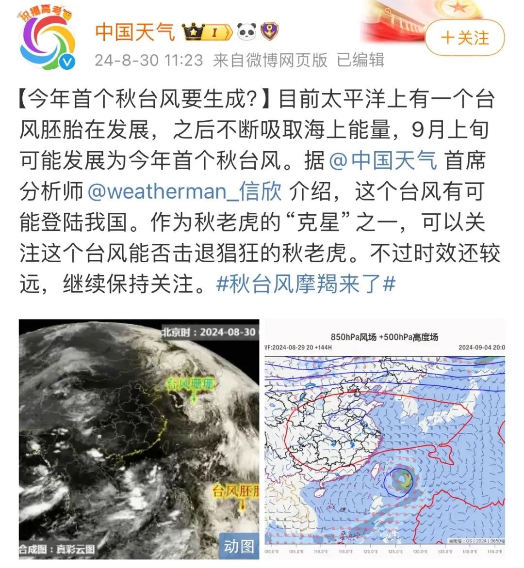據(jù)@中國(guó)天氣首席分析師 @weatherman 信欣介紹,這個(gè)臺(tái)風(fēng)有可能登陸我國(guó)。作為秋老虎的“克星”之一,可以關(guān)注這個(gè)臺(tái)風(fēng)能否擊退猖狂的秋老虎。不過時(shí)效還較遠(yuǎn),繼續(xù)保持關(guān)注。