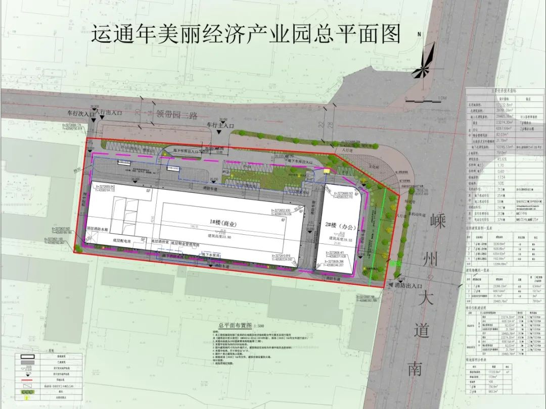 運(yùn)通年美麗經(jīng)濟(jì)產(chǎn)業(yè)園項(xiàng)目東至嵊州大道南,南至東港制衣公司,西至福泰公司,北至領(lǐng)帶園二路。本項(xiàng)目總用地面積為17332.8平方米(折合約26.00畝),總建筑面積為39761.09㎡,地上建筑面積為29465.76㎡,地下建筑面積10295.33㎡,地上建筑容積率1.70,地下建筑容積率0.60,綠地率10.0%,建筑密度45.6%,機(jī)動(dòng)車停車位313個(gè),非機(jī)動(dòng)車停車位747個(gè)。