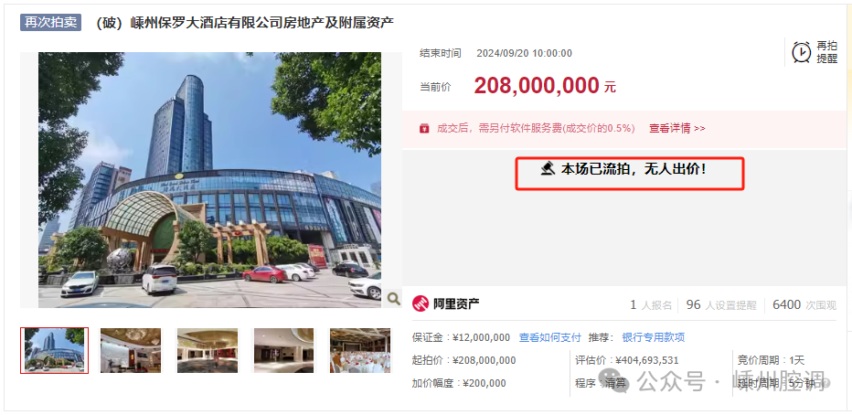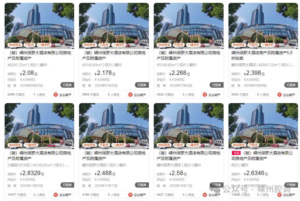 據(jù)了解,這已經(jīng)是嵊州保羅大酒店的第九次拍賣,首次拍賣時間為前年(2022年)11月,第二次拍賣時間為去年5月,第三次拍賣時間為去年10月,第四次拍賣時間為去年11月,第五次拍賣時間為今年5月份。