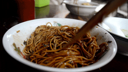 干挑面顧名思義,須干燥無湯,拌得高高的。