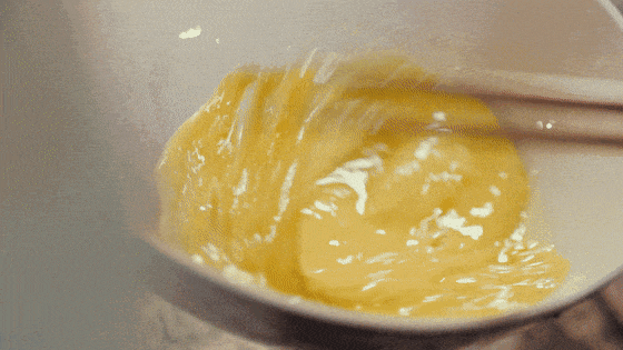 制作時(shí),將面粉攪拌成粉漿,然后用刀將粉漿劃拉成條狀,煮熟后與炒好的配菜混合,最終呈現(xiàn)出香噴噴的美味。