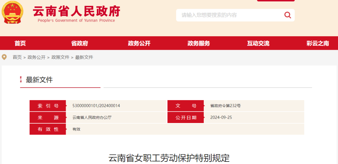 《云南省女職工勞動(dòng)保護(hù)特別規(guī)定》