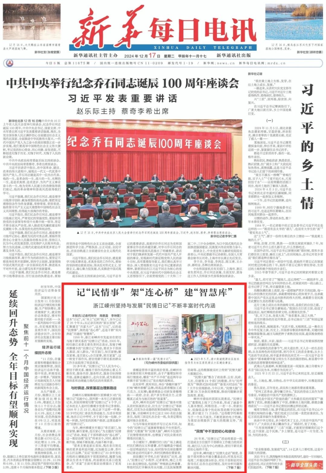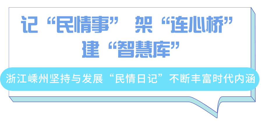 當(dāng)年,嵊州雅璜鄉(xiāng)開展以“串百家門,知百家情,解百家難,連百家心”為主題的“民情日記”活動,架起了干部和群眾的“連心橋”,這一基層治理“法寶”傳承至今,同時,載體不斷升級,領(lǐng)域不斷拓展,內(nèi)涵不斷豐富。