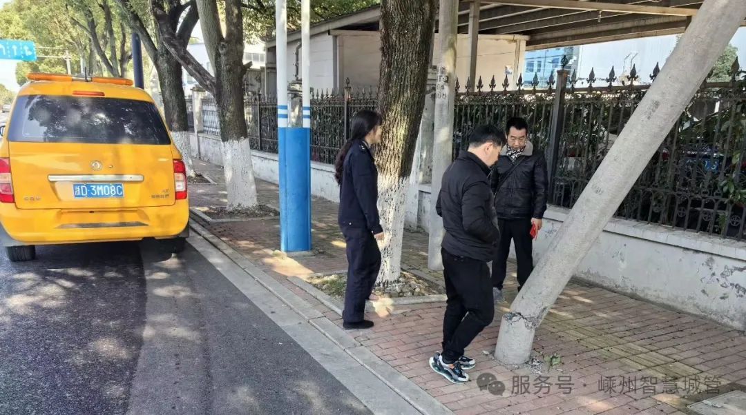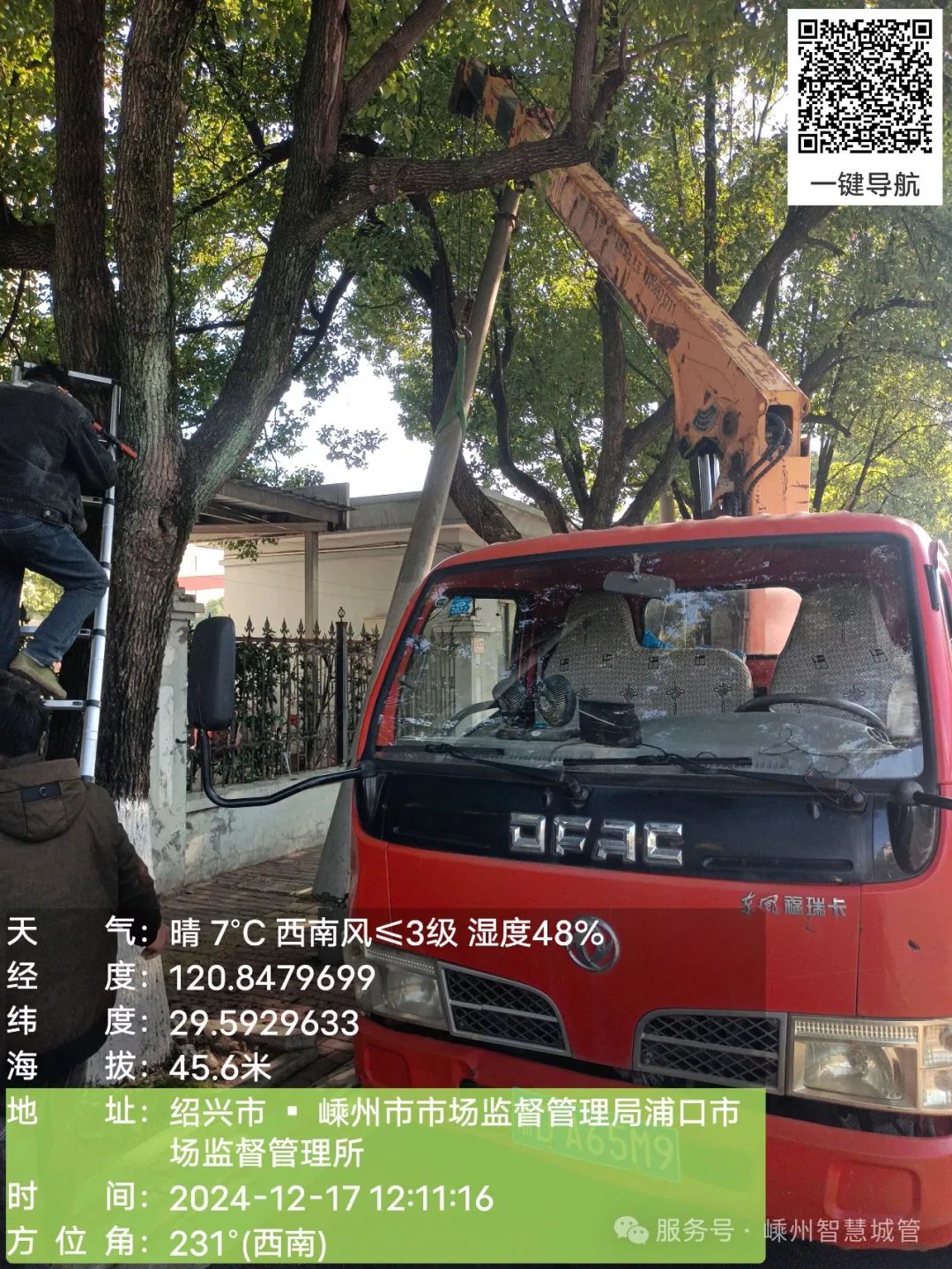 12月16日下午3點左右,嵊州市智慧城管采集員在日常巡查中,發(fā)現(xiàn)普田大道國家電網(wǎng)附近人行道上有不明立桿斷裂掛靠在行道樹上,存在嚴重的安全隱患。