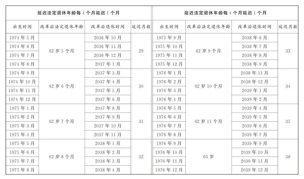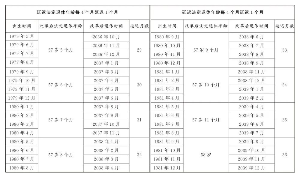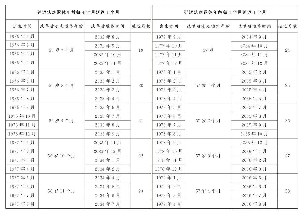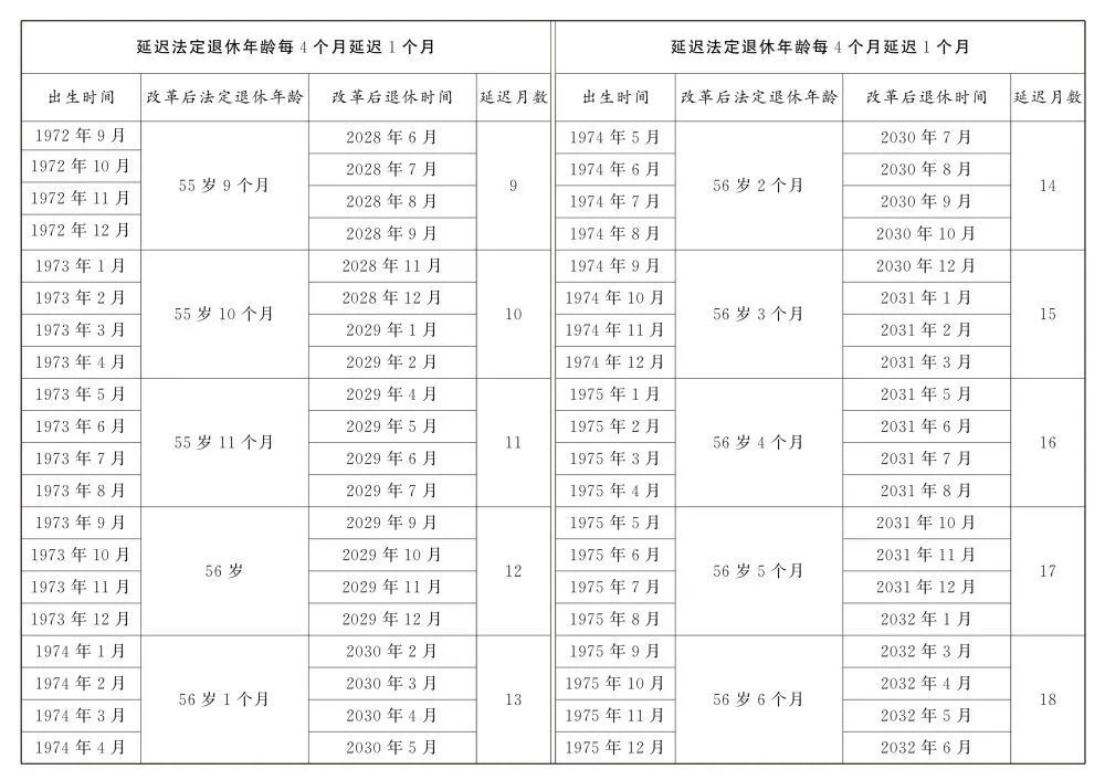 延遲法定退休年齡時(shí)間對(duì)照表公布