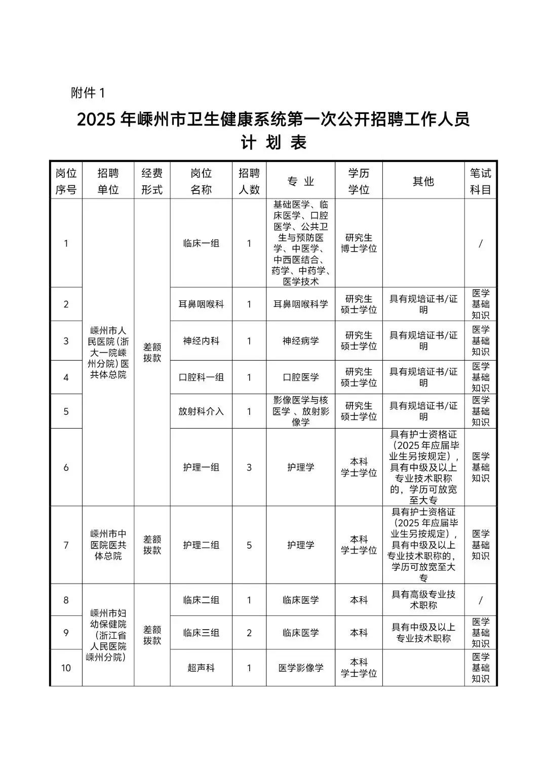 2025年嵊州市衛(wèi)生健康局下屬事業(yè)單位第一次公開招聘工作人員公告