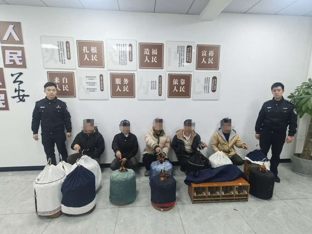 剡湖派出所立即組織人員進行全面摸排,利用畫眉鳥對聲音的特性,果然在周圍出租房內(nèi)發(fā)出了多只鳥的叫聲,逐一檢查后發(fā)現(xiàn)了14只豢養(yǎng)的畫眉鳥,民警俞星宇對這些畫眉鳥進行收繳并將5名嫌疑人抓捕。