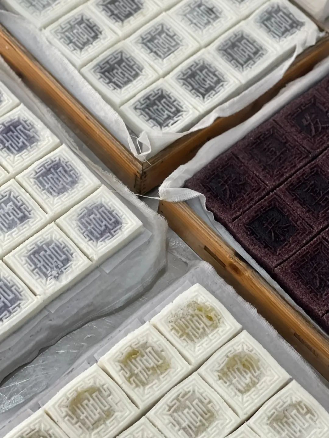 “福祿壽喜”“吉祥如意”“恭喜發(fā)財“”……這些寓意美好的字樣,以立體的形式精巧地呈現(xiàn)于糕面之上,濃郁的喜氣與吉祥,縈繞在周圍,讓人滿心歡愉。