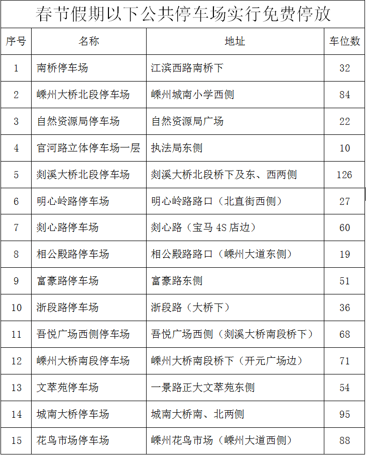 一元復(fù)始,萬象更新。在蛇年春節(jié)來臨之際,為方便廣大市民走親訪友,切實(shí)解決城區(qū)停車難問題,由市城投集團(tuán)管理的城區(qū)道路公共收費(fèi)停車泊位及公共停車場(江濱市場停車場除外)將在春節(jié)期間實(shí)行免費(fèi)停放,具體內(nèi)容如下: