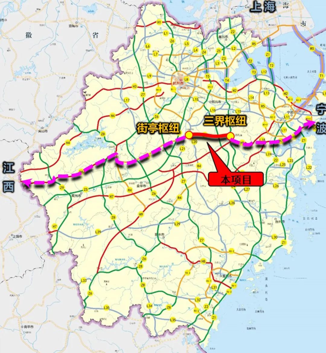 項目近期定位為諸暨至嵊州兩地的直連區(qū)域高速,可有效擴容紹興東西向通道通行能力;遠(yuǎn)期規(guī)劃向西接進入江西,向東可延伸至沿海高速網(wǎng)絡(luò),將成為貫通浙江中部地區(qū)東西向的重要通道,建設(shè)意義重大。