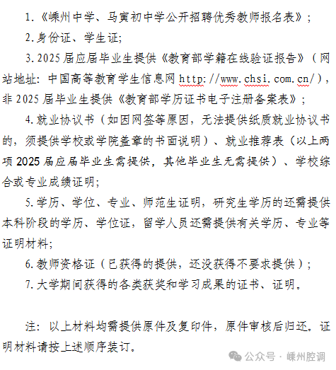 附件3:嵊州中學(xué)、馬寅初中學(xué)公開招聘優(yōu)秀教師現(xiàn)場(chǎng)確認(rèn)材料清單