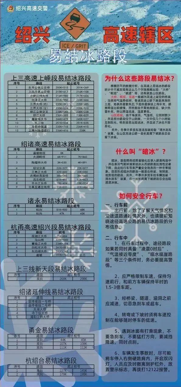 雨雪天氣時(shí),山區(qū)路段氣溫更低,一旦降到零下,路面的積水積雪容易結(jié)冰,導(dǎo)致路面濕滑,加上山區(qū)地形起伏不定,夜間視線不佳,利于暗冰“埋伏”,不熟悉路況的駕駛員要特別注意謹(jǐn)慎慢行。