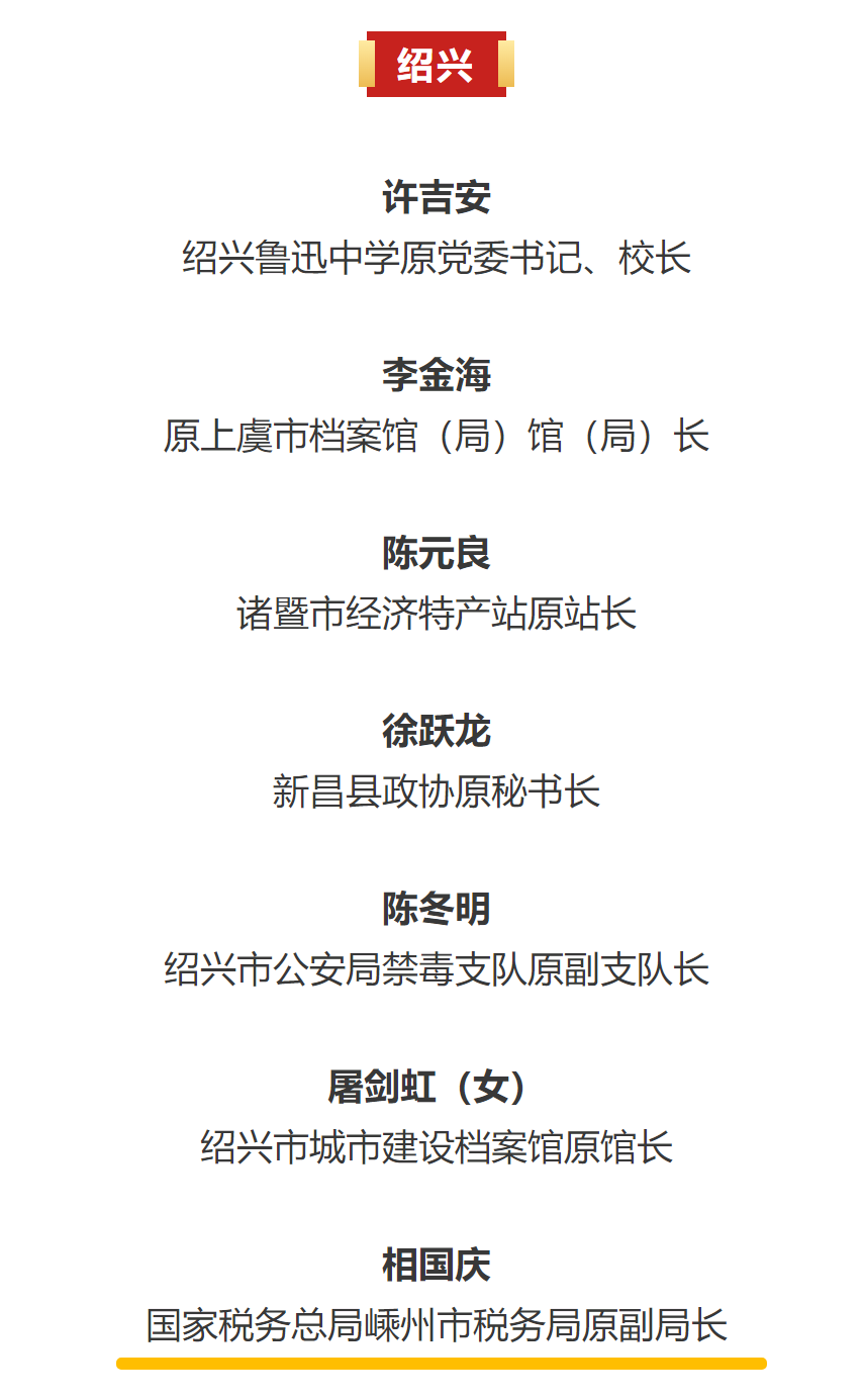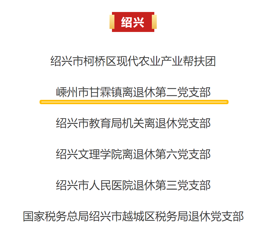 為表彰先進(jìn)、弘揚(yáng)正氣、鼓足干勁,引導(dǎo)激勵(lì)廣大離退休干部立足新起點(diǎn)、奮進(jìn)新征程、建功新時(shí)代,省委組織部、省委老干部局決定,授予80個(gè)離退休干部集體“浙江省離退休干部先進(jìn)集體”稱號(hào),授予100名離退休干部“浙江省離退休干部先進(jìn)個(gè)人”稱號(hào)。其中,嵊州上榜2個(gè)。