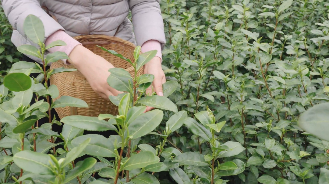 3月3日上午, 2025年頭茬春茶在金庭鎮(zhèn)東風村崗竹山自然村開采,茶農(nóng)們挎著小竹簍,雙手嫻熟地將嫩芽采入筐中。