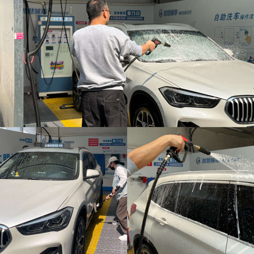 智慧城市便民自助洗車站點采用雙槍雙水便捷功能,同時配備大容量清潔泡沫箱、大功率伸縮吸塵器、擦拭所用大毛巾軟毛刷等工具,提供完善的自助洗車場地及設(shè)施。用戶可通過手機微信掃碼操作,流程清晰易懂,智能按時計費(洗車收費標(biāo)準(zhǔn)為單次20分鐘(含)內(nèi)收8元,不滿20分鐘按20分鐘計,超出20分鐘重新再充值計費),讓有車一族不受時間、環(huán)境限制,親手完成“愛車全身SPA”的一種新型便捷式自助洗車服務(wù)體驗。