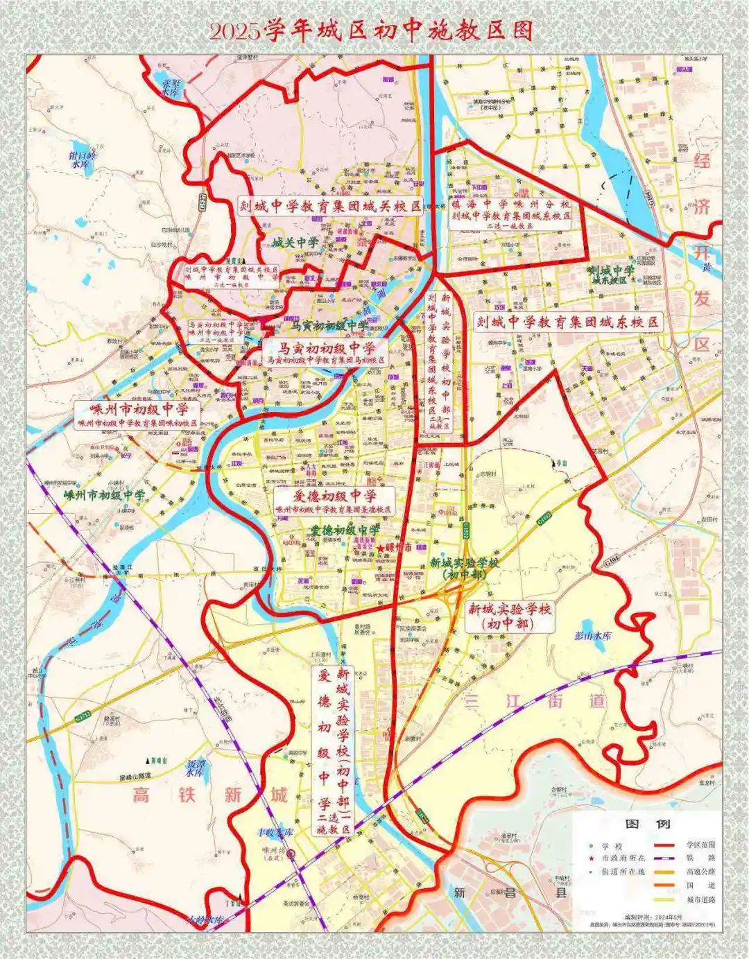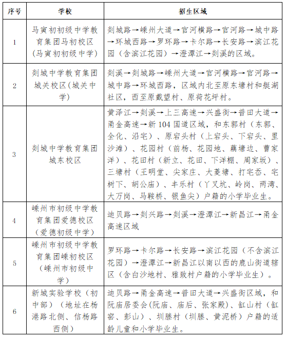 (1)剡溪→剡興路→興盛街→上三線區(qū)域為新城實驗學(xué)校(初中部)和剡城中學(xué)教育集團城東校區(qū)“二選一”施教區(qū)。