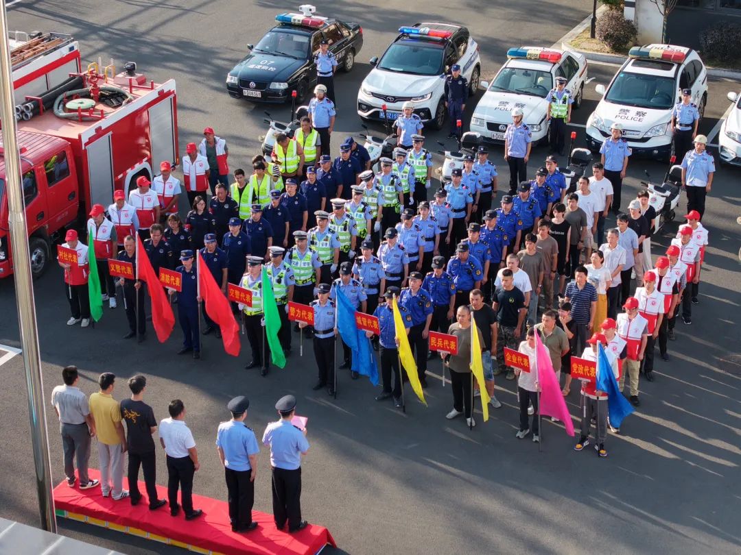 由公安、消防、民兵、救援隊及村社志愿者組成的9支方陣共100余人精神抖擻、整裝待發(fā);6輛巡防電瓶車與10輛特種車輛組成的機(jī)動方陣嚴(yán)陣以待,以“精準(zhǔn)布防、全域聯(lián)動”之勢,吹響了守護(hù)崇仁夏夜安寧的嘹亮號角。