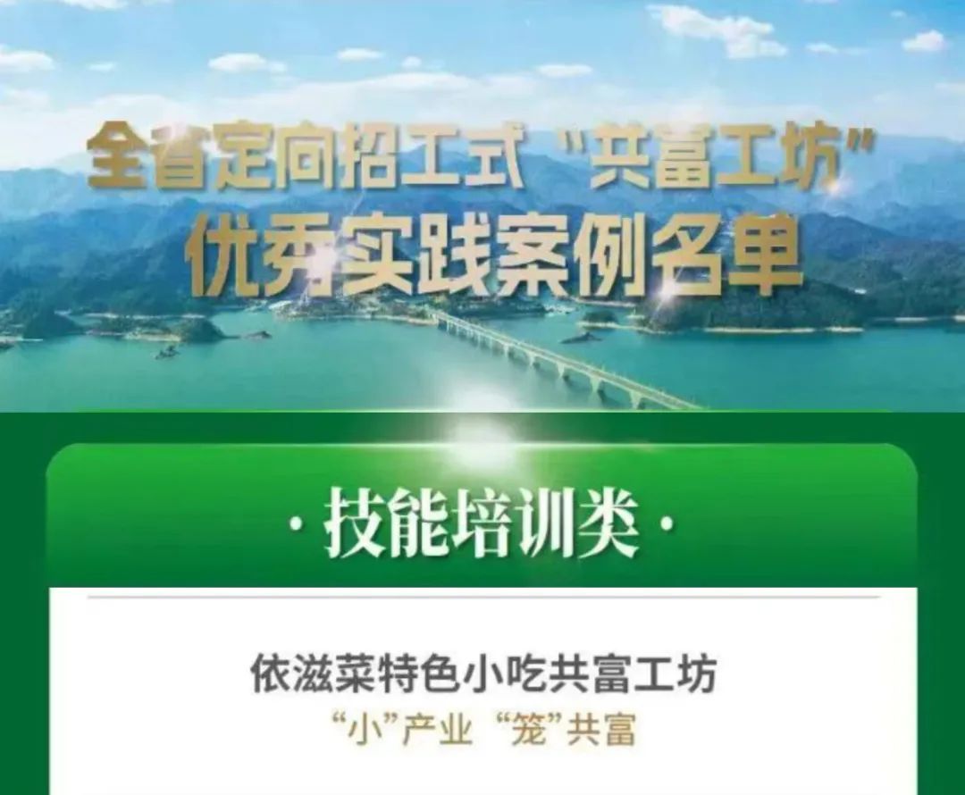 近日,全省召開深化定向招工式“共富工坊”建設(shè)推進(jìn)會(huì),會(huì)上發(fā)布了全省50個(gè)優(yōu)秀實(shí)踐案例,我市依滋菜特色小吃共富工坊成功入選。