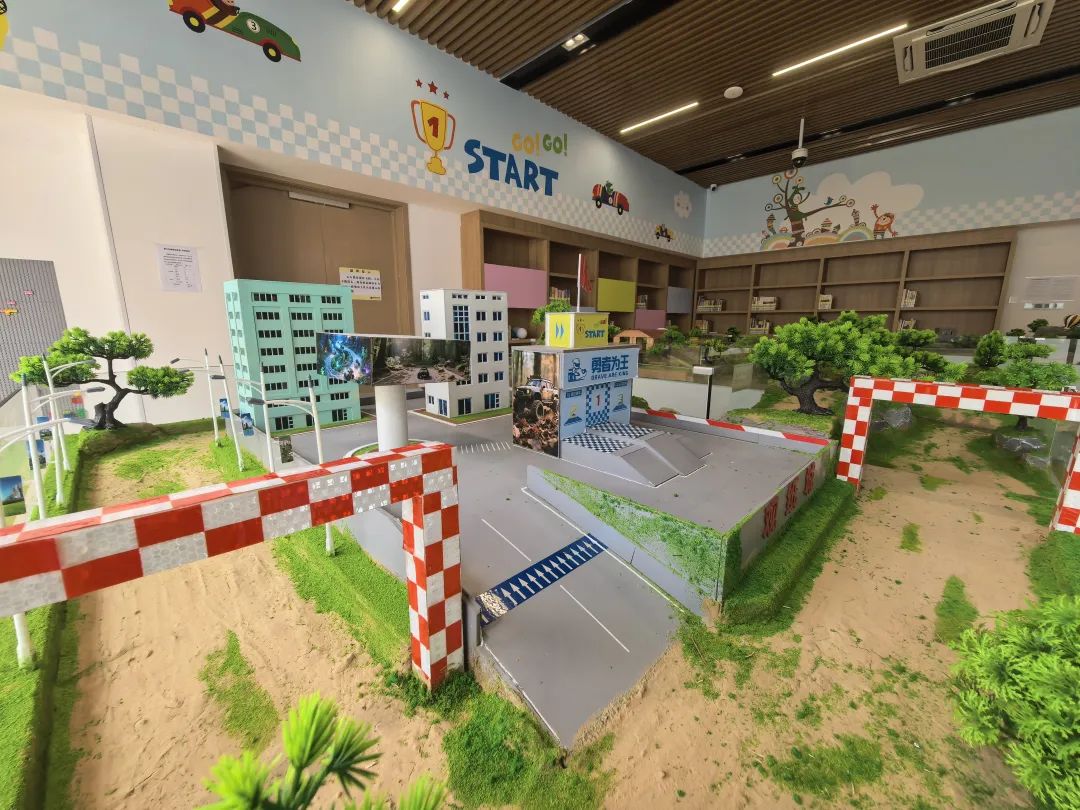 智能體驗區(qū)包含越野賽車與無人機足球項目。順應國家發(fā)展低空經(jīng)濟的趨勢,結(jié)合全國青少年無人機大賽、全國青少年航天創(chuàng)新大賽等無人機賽事入選教育部白名單,該館增設(shè)了無人機足球項目;越野賽車作為經(jīng)典項目,在鍛煉方向掌控和賽車駕駛性的基礎(chǔ)上,還引導讀者因地制宜思考問題,提升應對困難解決問題的能力。