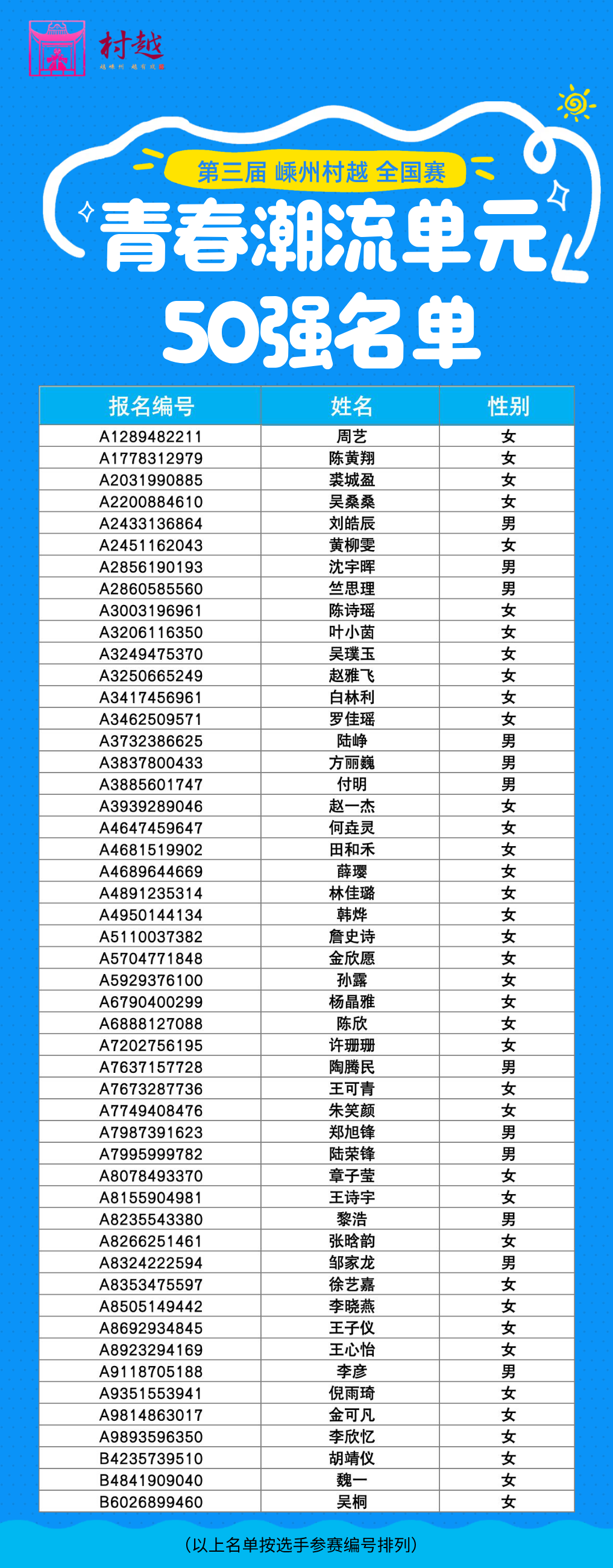 日前,第三屆“嵊州村越”全國(guó)賽青春潮流單元初賽評(píng)審工作已順利結(jié)束。