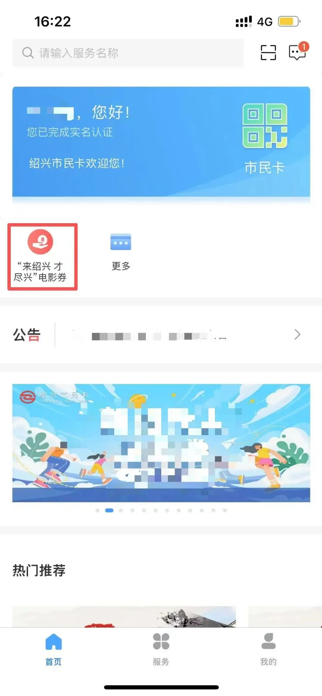 打開(kāi)“紹興市民云”app,找到“‘來(lái)紹興 才盡興'電影券”,即可使用